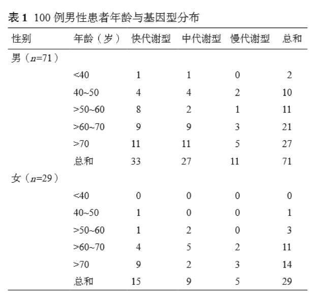 解放军总医院100 例冠心病患者,冠心病 诊断:冠脉造影确诊。 100 例冠心病患者氯吡格雷 CYP2C19基因型的基本情况